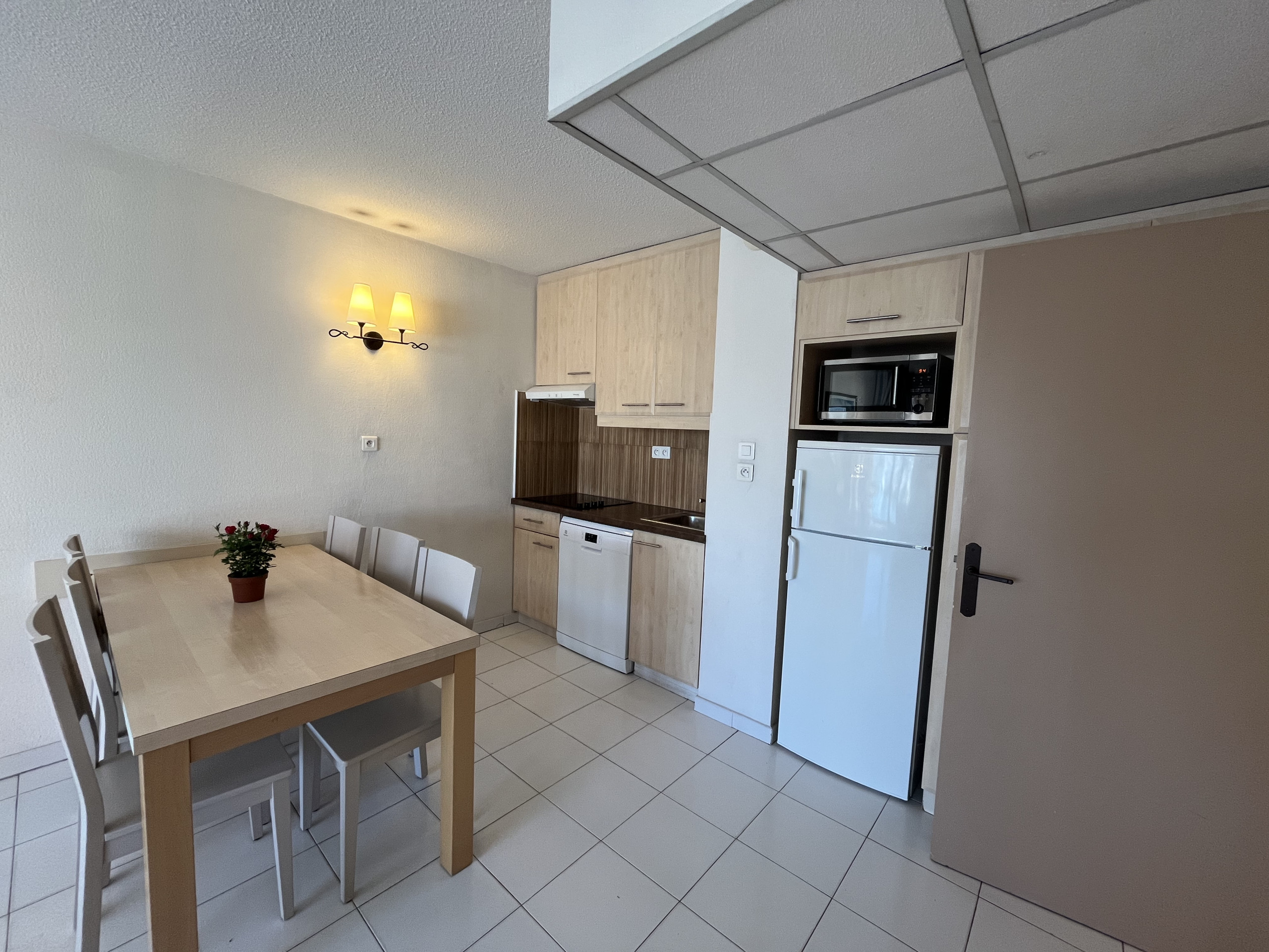 These 30m2 allow sleeping for 4 people, ideally for 2 adults and 2 children. The beautiful living room is independent of the equipped kitchen, a comfortable sofa, table and chairs allowing meals to be taken mainly on the balcony when the weather permits.