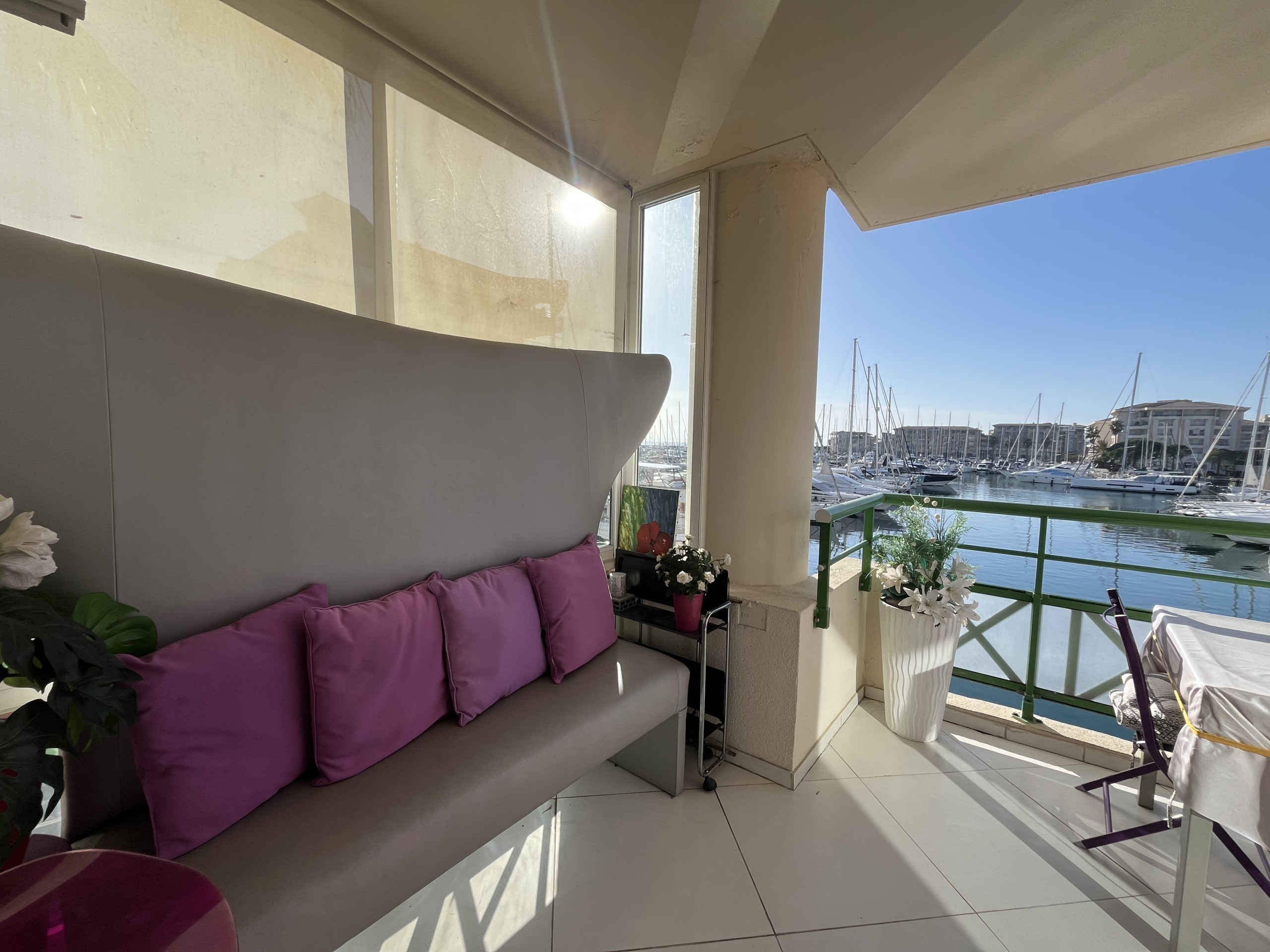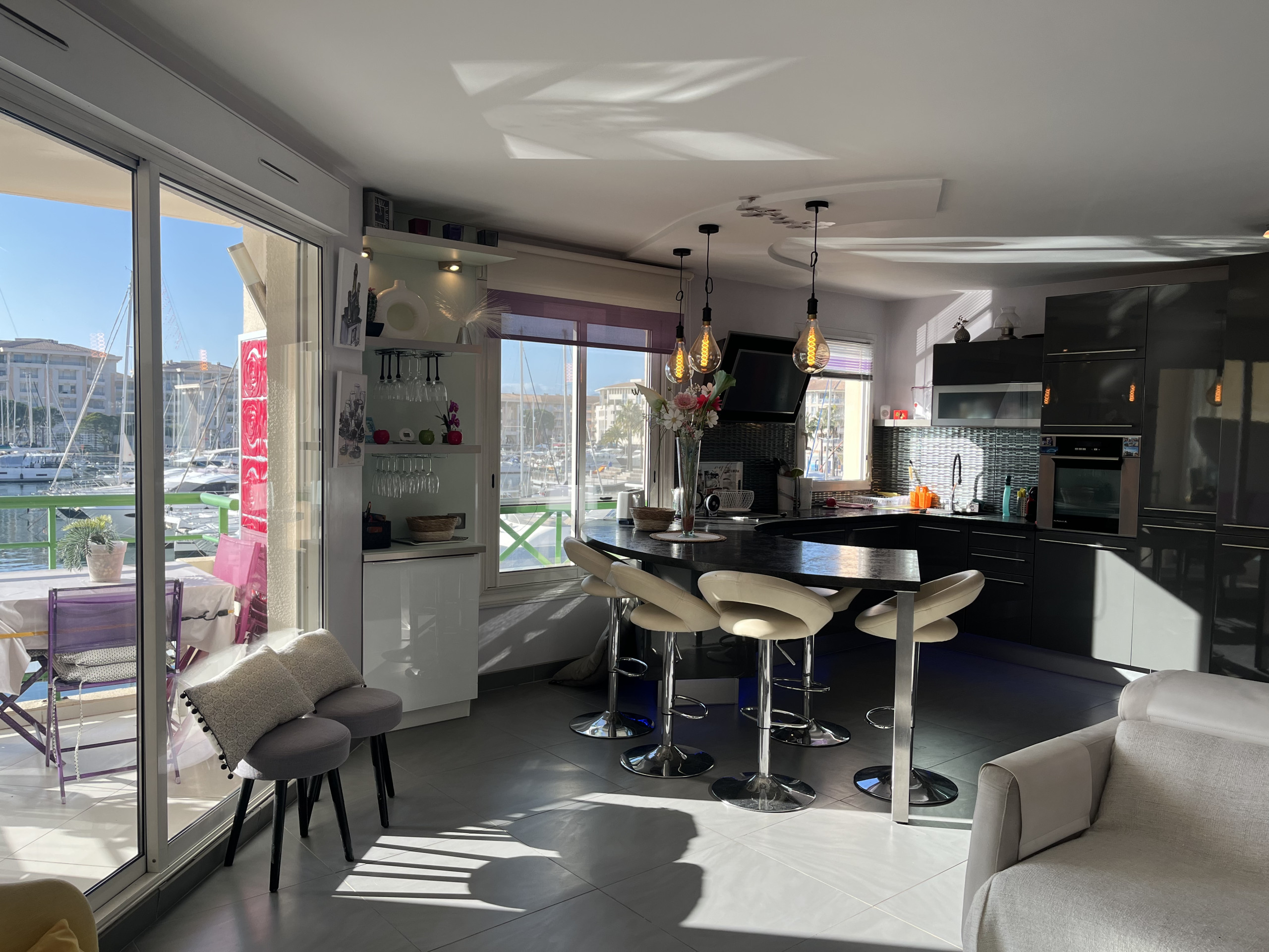 On the quays of Port-Fréjus, a magnificent 50m² one-bedroom apartment with incredible views, air conditioning, Wi-Fi, and a large garage.