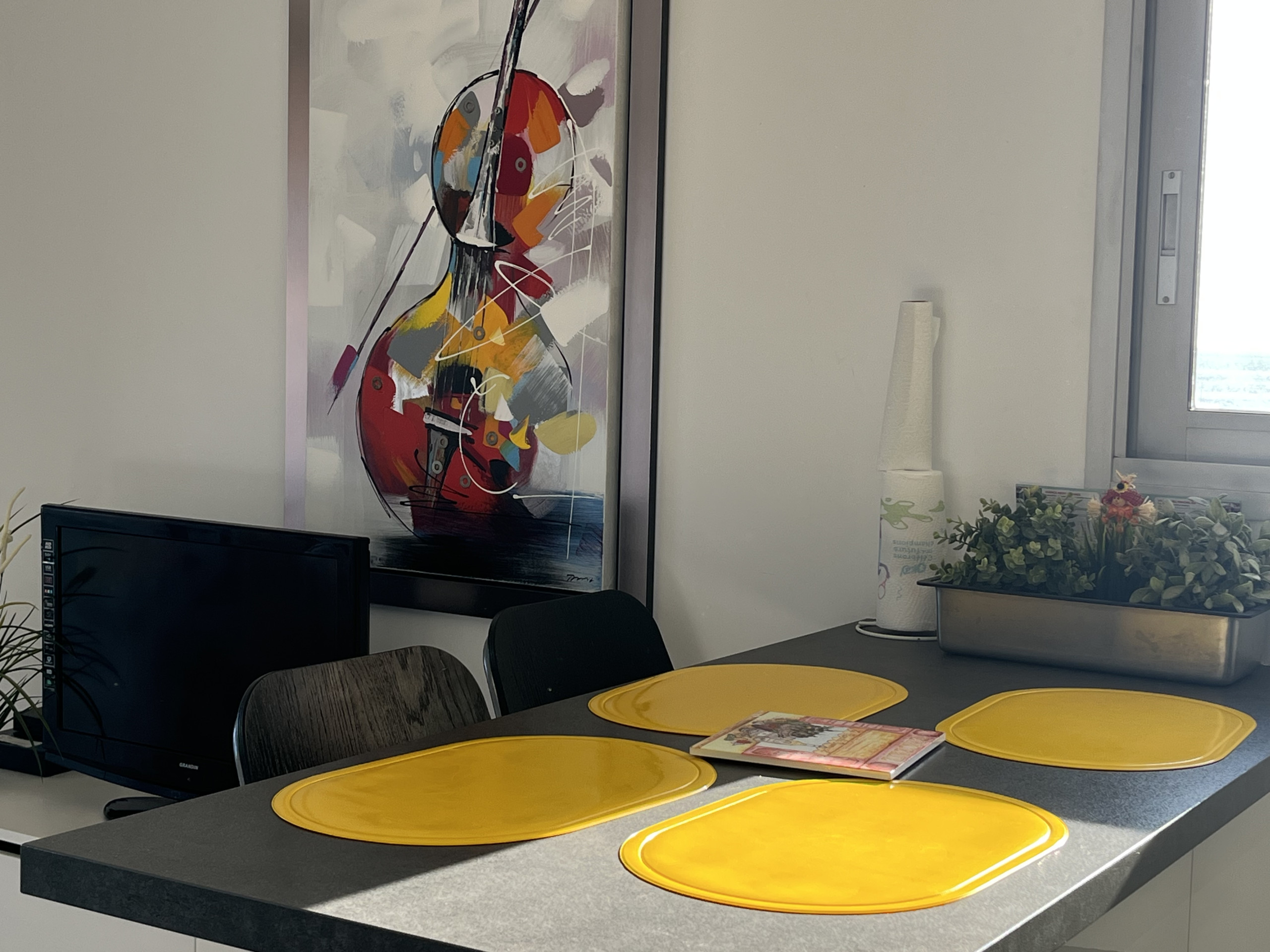Located on the 4th and last floor, accessible by the elevator, this accommodation offers a clear view of the Maures hills and the Rocher de Roquebrune.