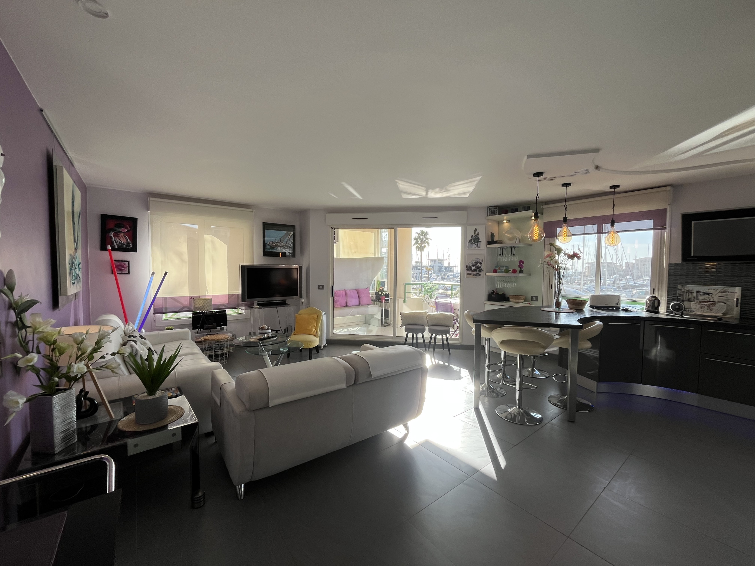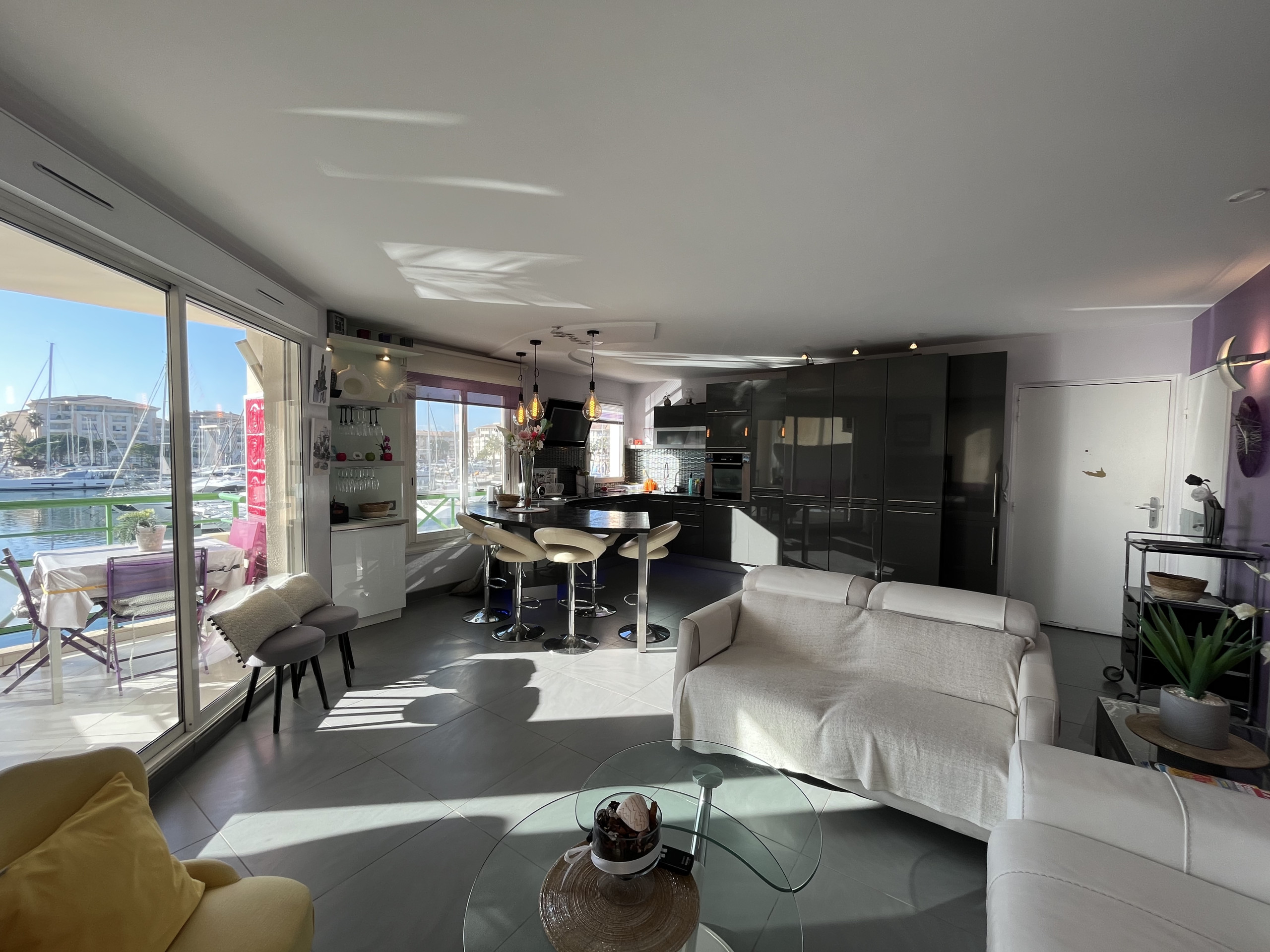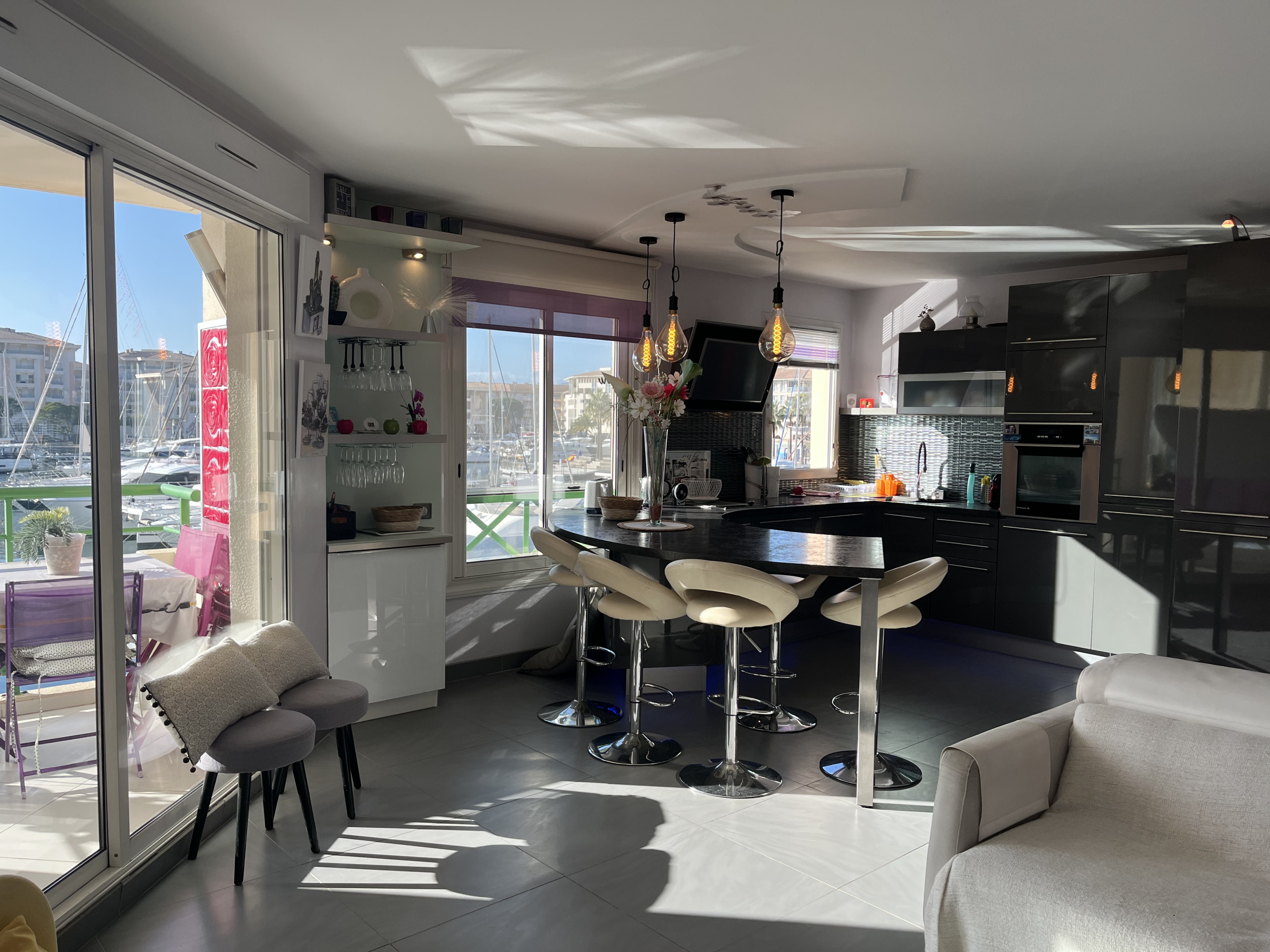 En los muelles de Port-Fréjus, un magnífico apartamento de un dormitorio de 50m² con increíbles vistas, aire acondicionado, Wi-Fi y un gran garaje.