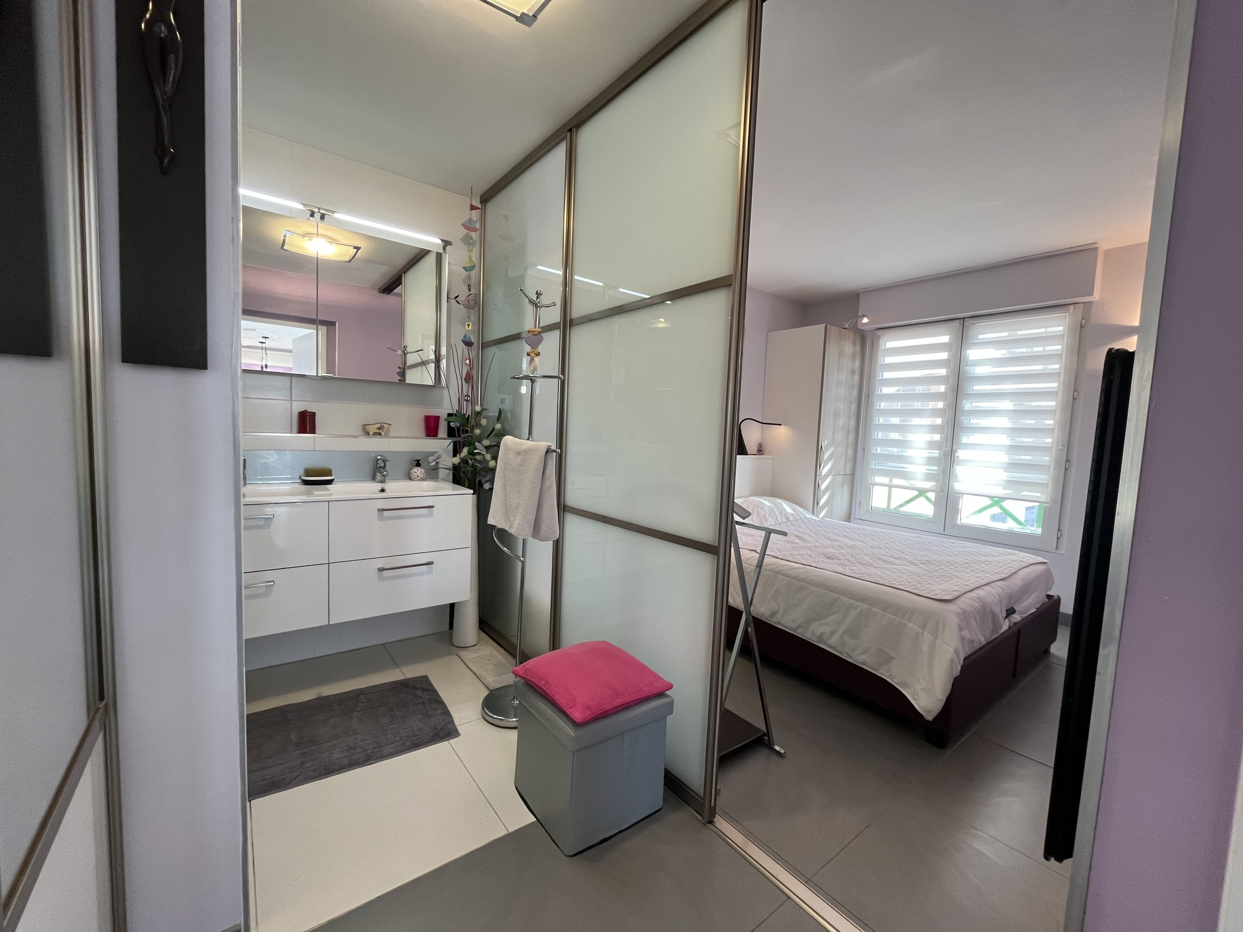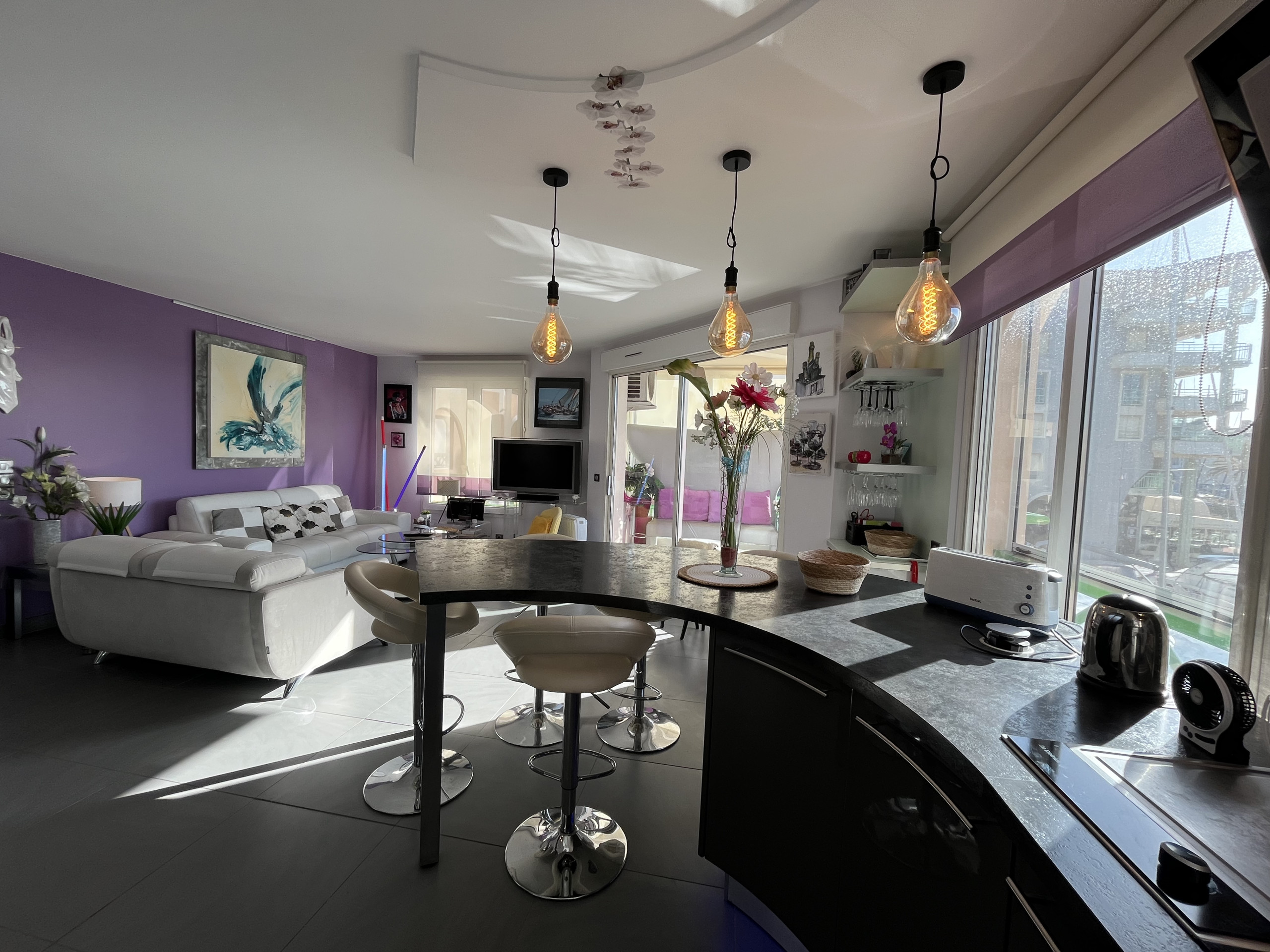 El alojamiento de 70m2 en el 3er piso de la residencia con ascensor es una decoración soberbia, cuidada y contemporánea, abierta por su balcón hacia la magnífica bahía de Fréjus y Saint-Raphael.