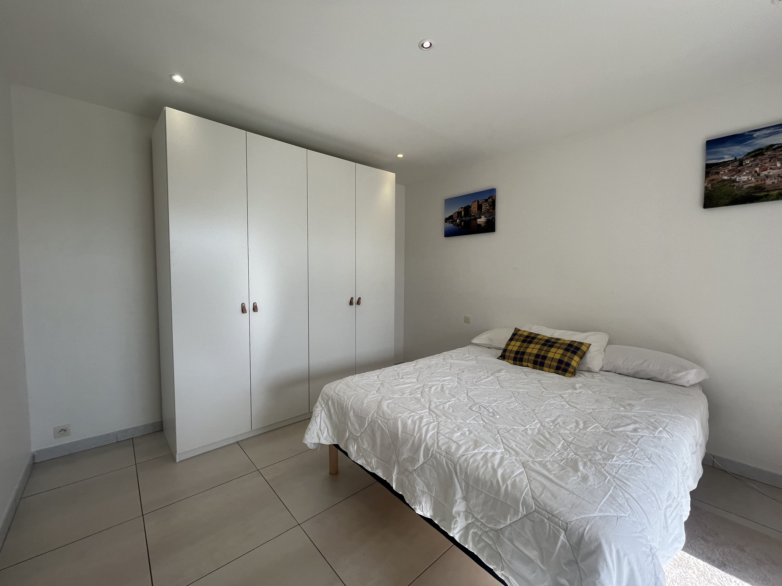 Estos 45m2 acomodarán muy fácilmente de 5 a 6 personas que disfrutarán de un hermoso balcón con una magnífica vista al mar.El hall de entrada se distribuye de derecha a izquierda: una habitación cerrada con literas, la segunda puerta es la hermosa sala de estar con cocina equipada, un tipo sofá con 2 camas nido, mesa y sillas que permiten tomar las comidas con vistas al gran ventanal, en otras palabras, una sensación de gran espacio. El dormitorio está equipado con una cama de 160 cm, el baño reformado y el aseo completan esta descripción.