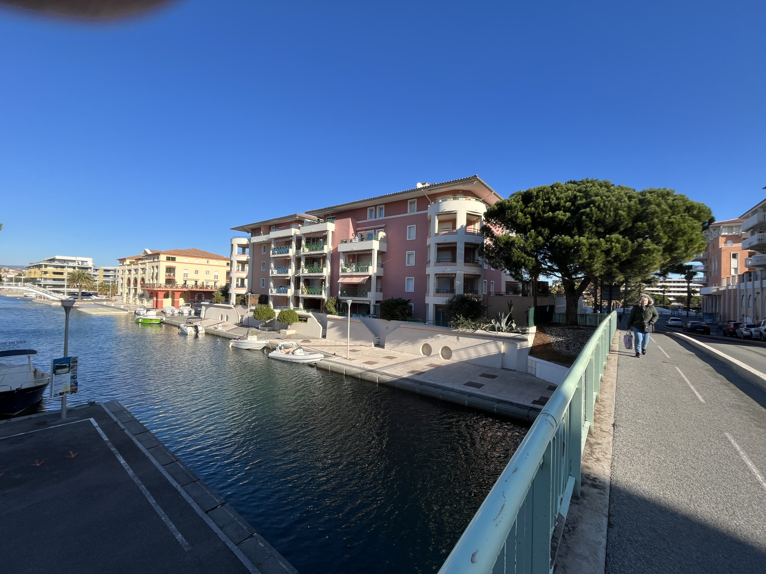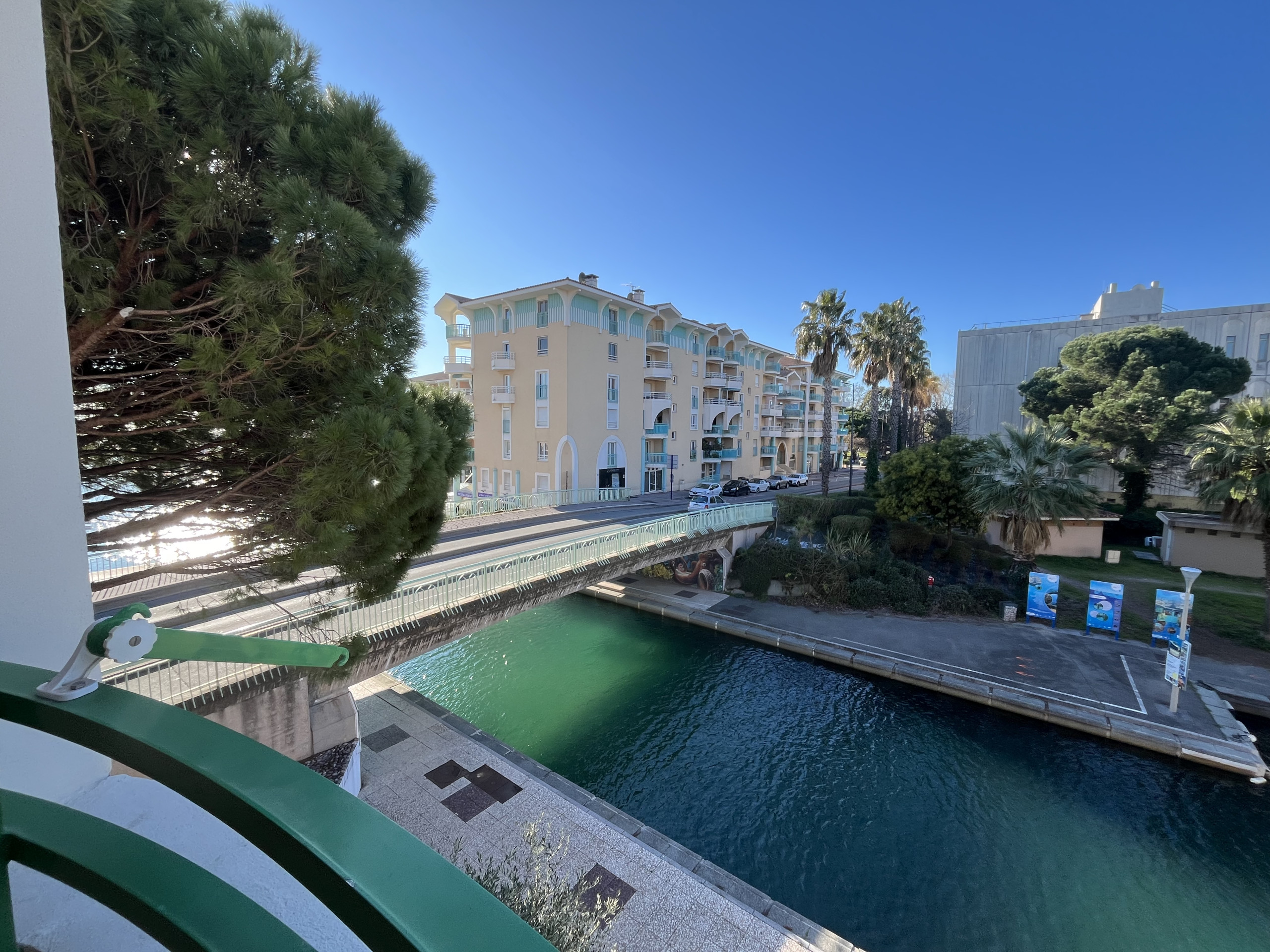 Dal balcone, godetevi una piacevole vista sul canale della marina, perfetta per momenti di relax dopo una giornata al mare ☀️