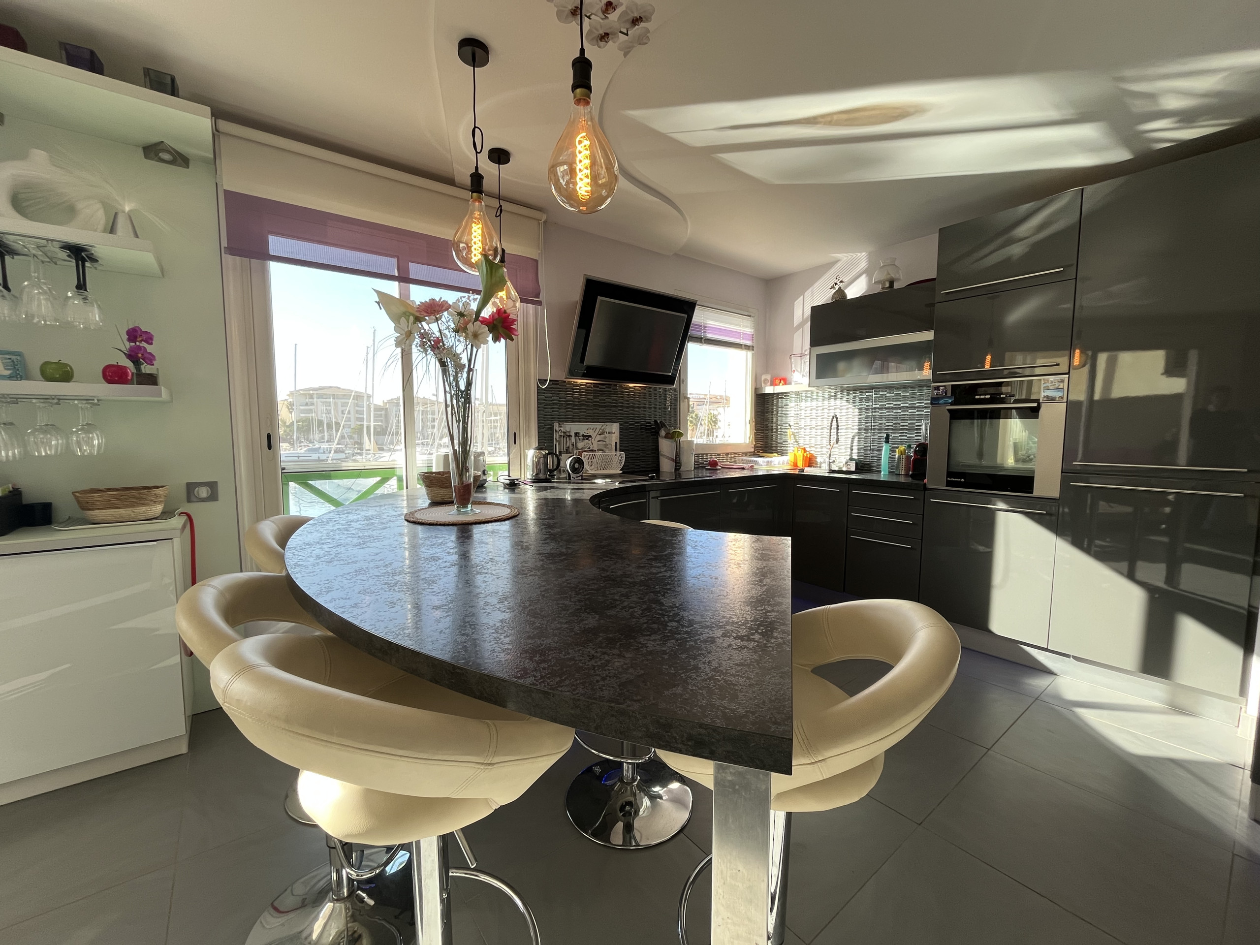 Bellissima cucina americana moderna, completamente attrezzata (induzione, forno, microonde, lavastoviglie, macchina da caffè, bollitore, spremi agrumi...)