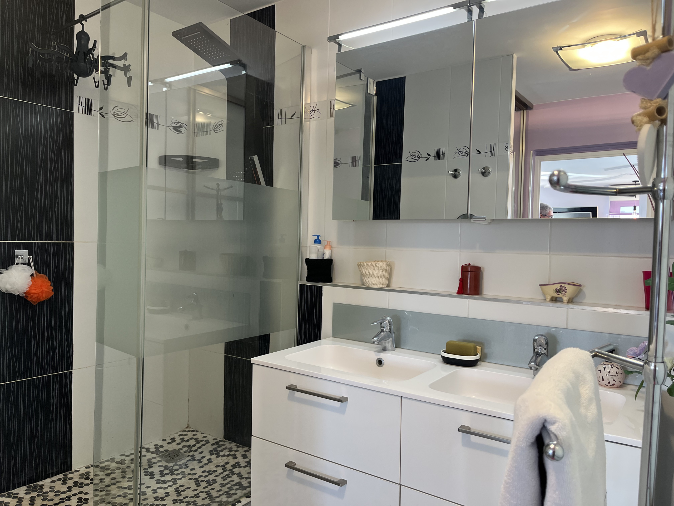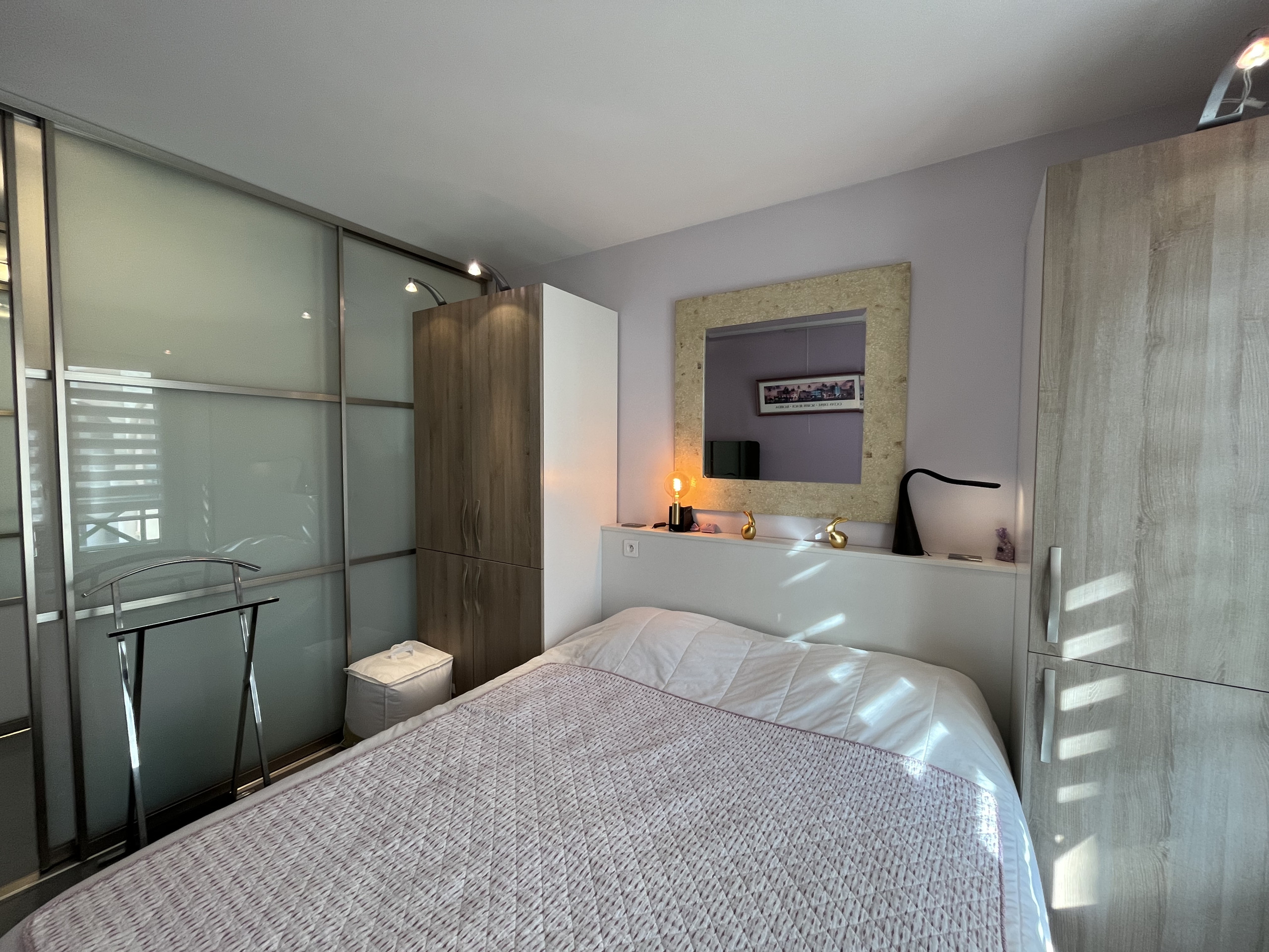 Le 2 bellissime camere da letto con il loro letto 160 per 200 sono anch'esse climatizzate e offrono splendidi armadi. Bagno con cabina doccia e servizi igienici separati completano questo bellissimo appartamento.