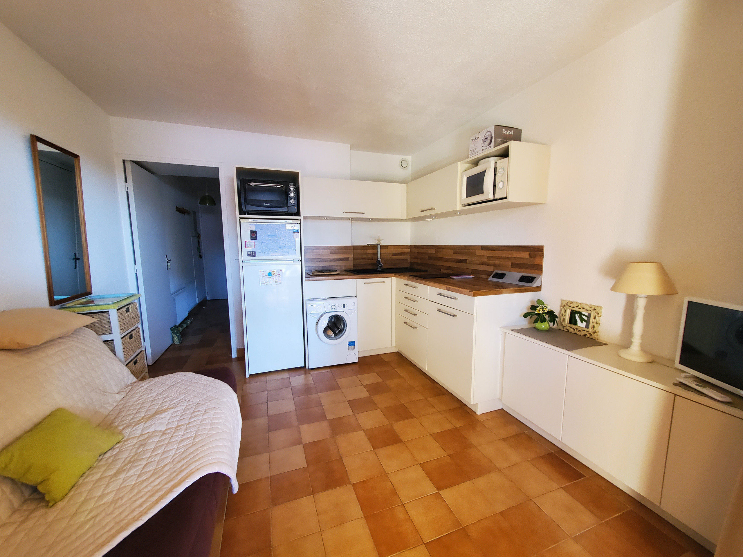 Benvenuti in questo grazioso appartamento di 27 m², ideale per un soggiorno rilassante a Saint-Raphaël. Perfetto per 2 adulti (capacità max. 3 persone), offre un ambiente tranquillo e verdeggiante, a soli 150 metri dalla spiaggia di sabbia della Péguière.