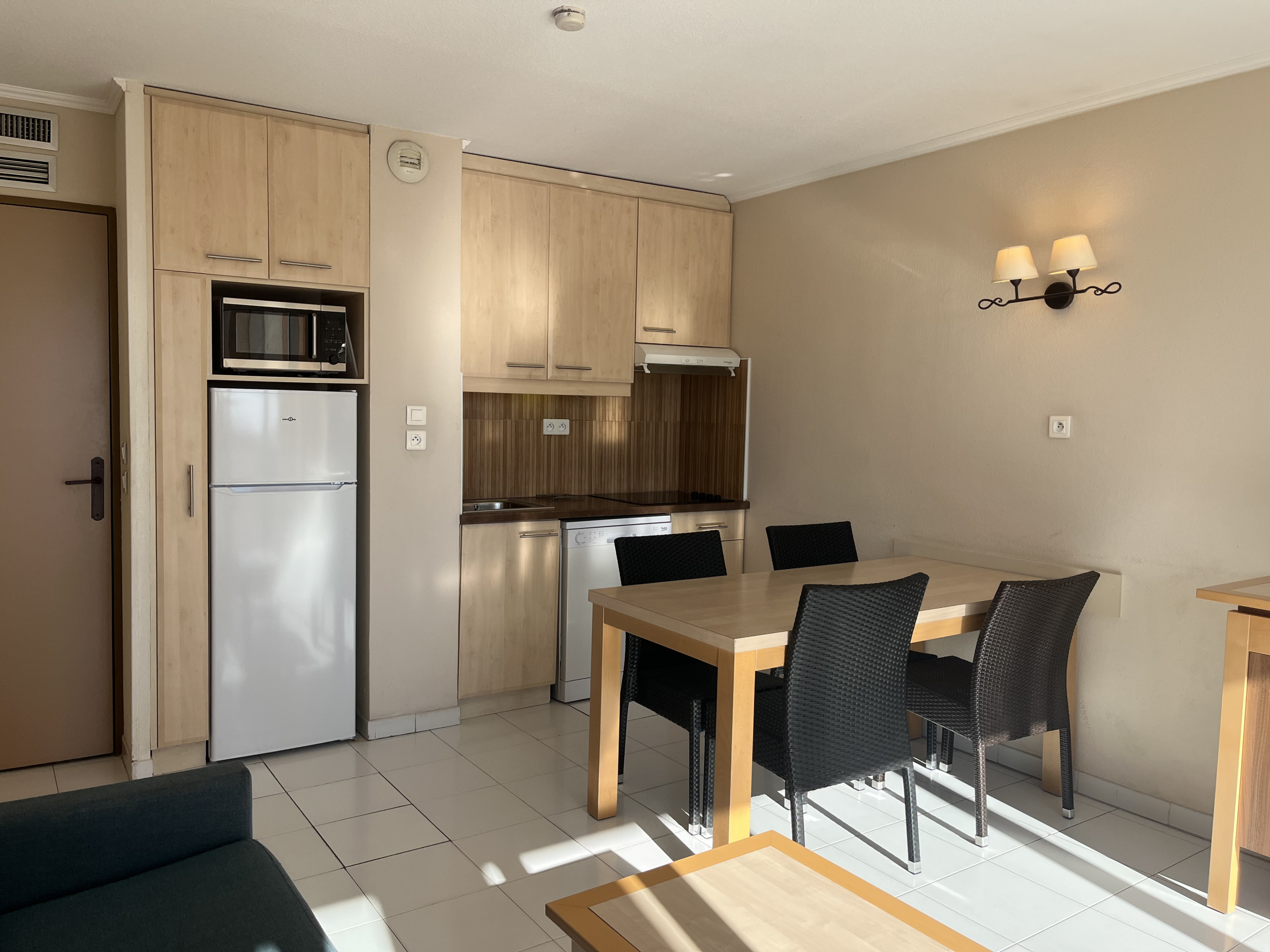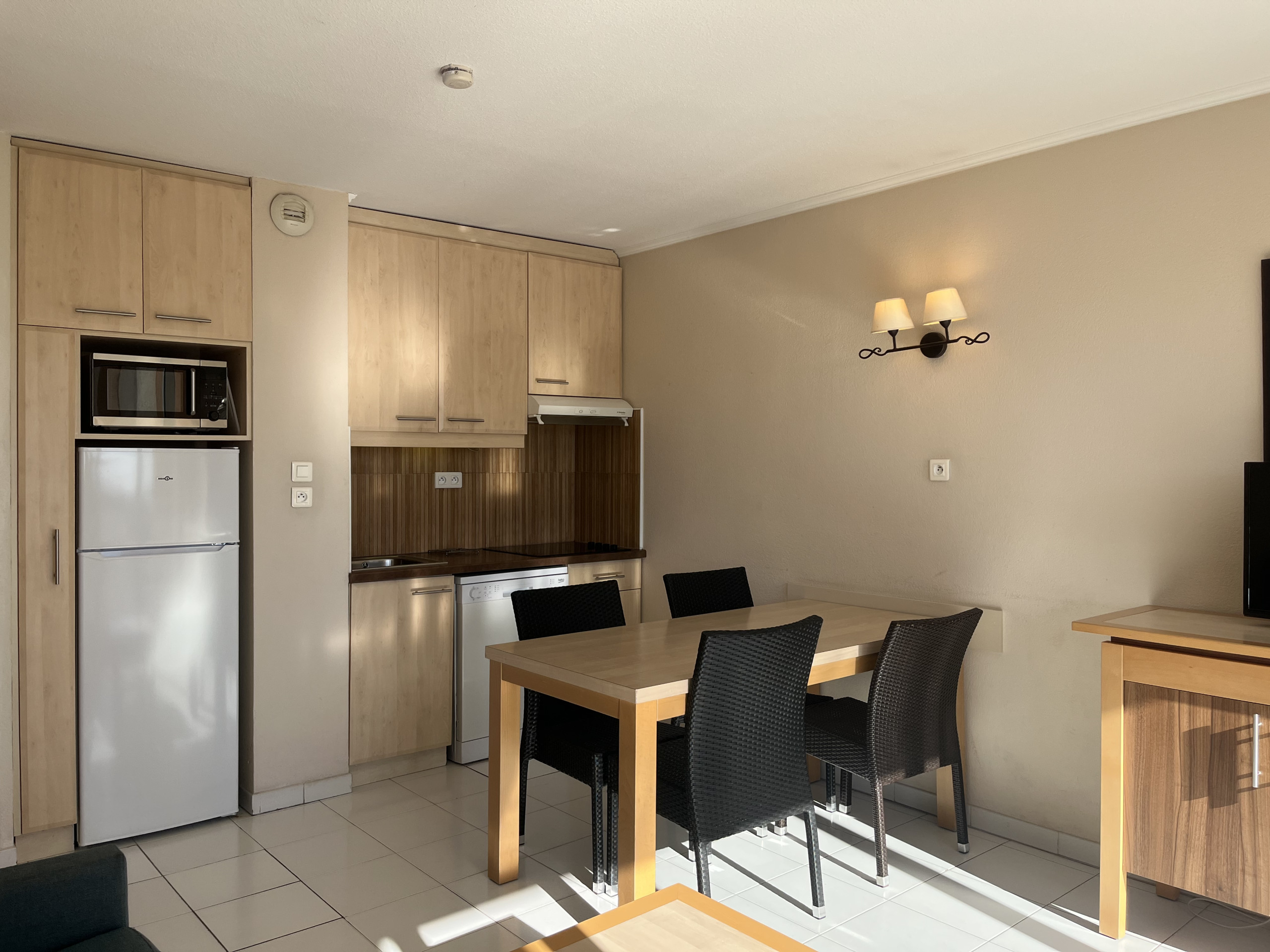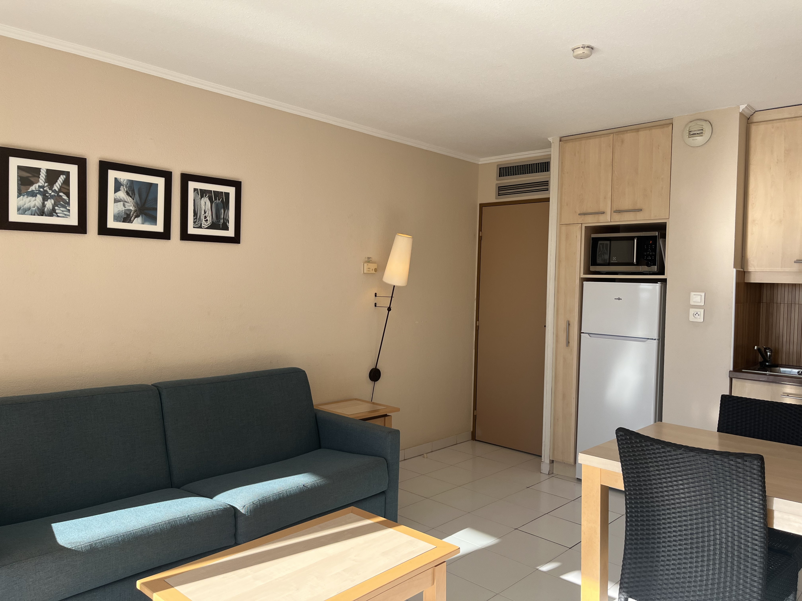 Parfaitement conçu pour les séjours de courte ou de moyenne durée, vous serez pris dès l’entrée par sa luminosité qu’offrent les baies vitrées du séjour.
