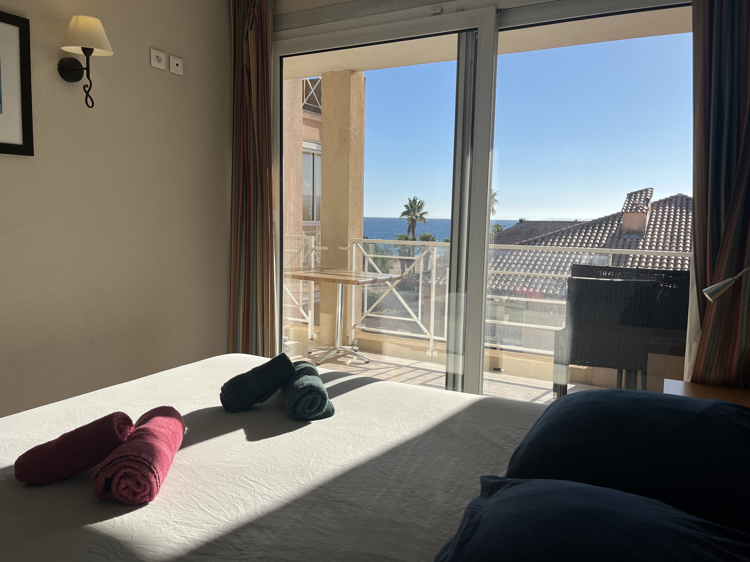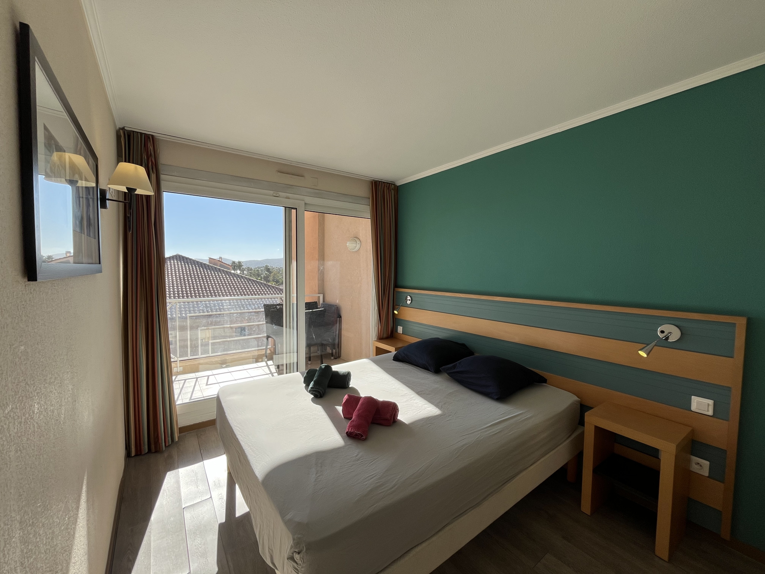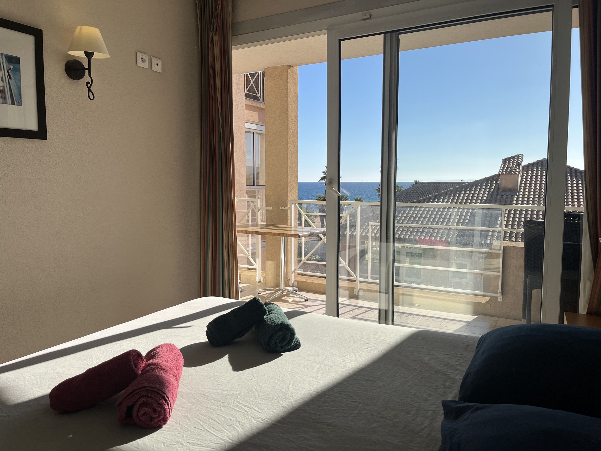 Voilà un des logements que nous adorons présenter ! Vous savez le logement qui dès l’ouverture de la porte permet de voir l’une des plus belles du port de Fréjus et qui vous laisse exprimer vos émotions, et, cela vous rendre heureux, toute l’équipe adore.