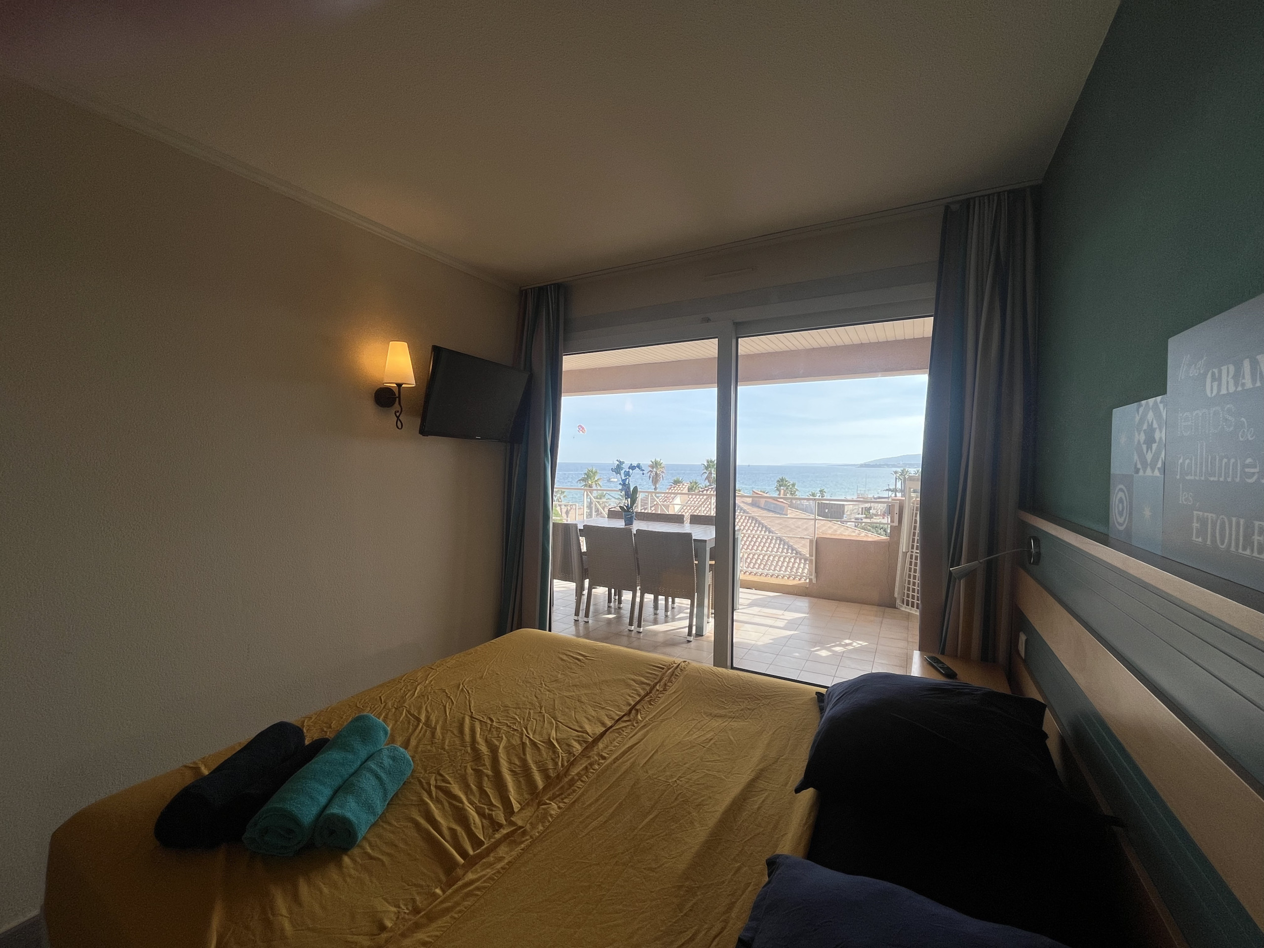 Cap Hermès, vue mer magnifique, accès piscine pour ce logement, 4 personnes, clim, parking privé, accès direct aux plages