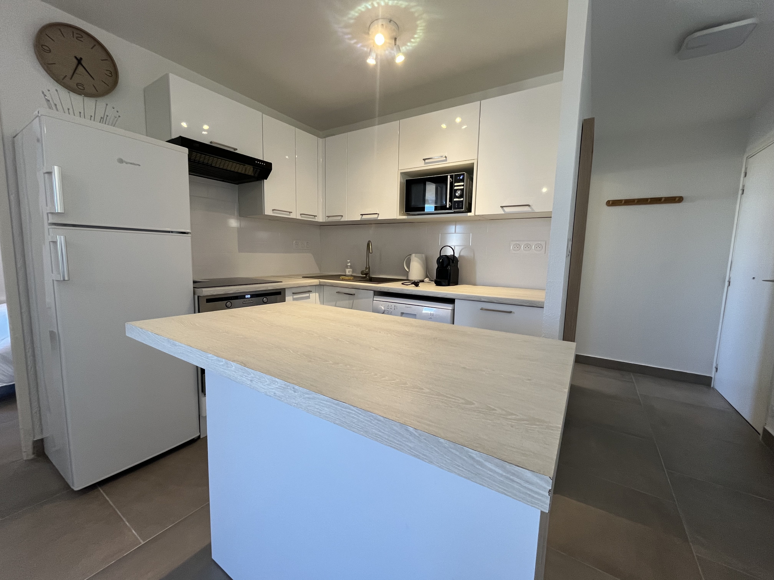 Coup de coeur 2025. Logement état neuf, très bien équipé et WIFI.Dans une des résidences les plus recherchées de Fréjus-Plage avec piscine au regard de sa situation géographique et de ses équipements la MIOUGRANO, ce bel appartement situé au 6éme étage au nord-est permet de séjourner agréablement à 6 personnes. (idéalement maximum 4 adultes).D’une surface de 50m2 environ, il permet l’accès à un bel espace sur la gauche avec séjour (avec canapé convertible 2 places) et cuisine ouverte, dans le prolongement l’accès à un grand balcon avec vue dégagée sur les sommets du massif de l’Estérel et du Haut Var.La première chambre en enfilade du séjour avec un lit double a lui aussi un accès direct avec le balcon. De l’autre côté de l’entrée se trouve le couloir avec un très grand espace de rangement à gauche et sur la droite une belle salle d’eau avec douche à l'italienne neuve, lave linge et, un wc séparé pour finir au fond du couloir avec la chambre et son lit 2 places.Le logement est entièrement climatisé : ce qui permet de rafraîchir l’ensemble du logement ou de le réchauffer suivant la période du séjour, puisque le logement peut vous accueillir tout au long de l'année .Vous disposerez d’un lave vaisselle, de plaques de cuisson neuve, four et micro-ondes, cafetière, grille pains et bouilloire, d’ un réfrigérateur-congélateur, d’une TV, d’une table et des chaises en nombre adapté à la capacité pour prendre les repas dans le séjour, ainsi que tout le mobilier pour profiter agréablement du grand balcon.L’appartement a fait l’objet d’une rénovation récente et sa décoration est soignée. Un parking privatif est compris dans la location et visible du balcon puisqu’en bas de l’entrée de la résidence. La piscine de la résidence est ouverte du 1er juin au 30 septembre et permet de profiter avec les enfants des plaisirs et joies de l’eau.Côté positionnement cet appartement n’offre que des avantages : les commerces, les plages, les centres d’intérêts de Fréjus Plage et de Port Fréjus sont à quelques minutes à pied. La gare TGV Saint Raphael Valescure à 1.3 km est accessible en 20 minutes aisément. Les chaudes soirées d’été permettront de se balader sur le front de mer, Port Fréjus ou jusqu’à Saint Raphael, de manger dans un des très nombreux restaurants, de vous délecter d’une glace aux innombrables parfums qui régalent les petits et les grands, de profiter des opportunités du marché nocturne (tous les soirs de juillet et d’août), d’assister à un des nombreux feux d’artifice tiré à toute proximité ; Et toujours à proximité : Saint- Raphael et son Vieux Port (départs des bateaux bleus pour de belles escapades à Saint- Tropez et les îles de Lérins au large de Cannes), le massif de l’Estérel, les gorges de Verdon, le lac de Saint Cassien et tant d’autres lieux que vous présentera si vous le souhaitez, A2D Port Fréjus.Le linge de lit et le linge de toilette sont compris.Kit inclus : tapis de bain, torchon, lavette et produits ménagers (liquide vaisselle, lessive linge et lave-vaisselle, produit sol)La prestation ménage n’est pas incluse, elle est à réserver si souhaitée.Assurance annulation incluse.