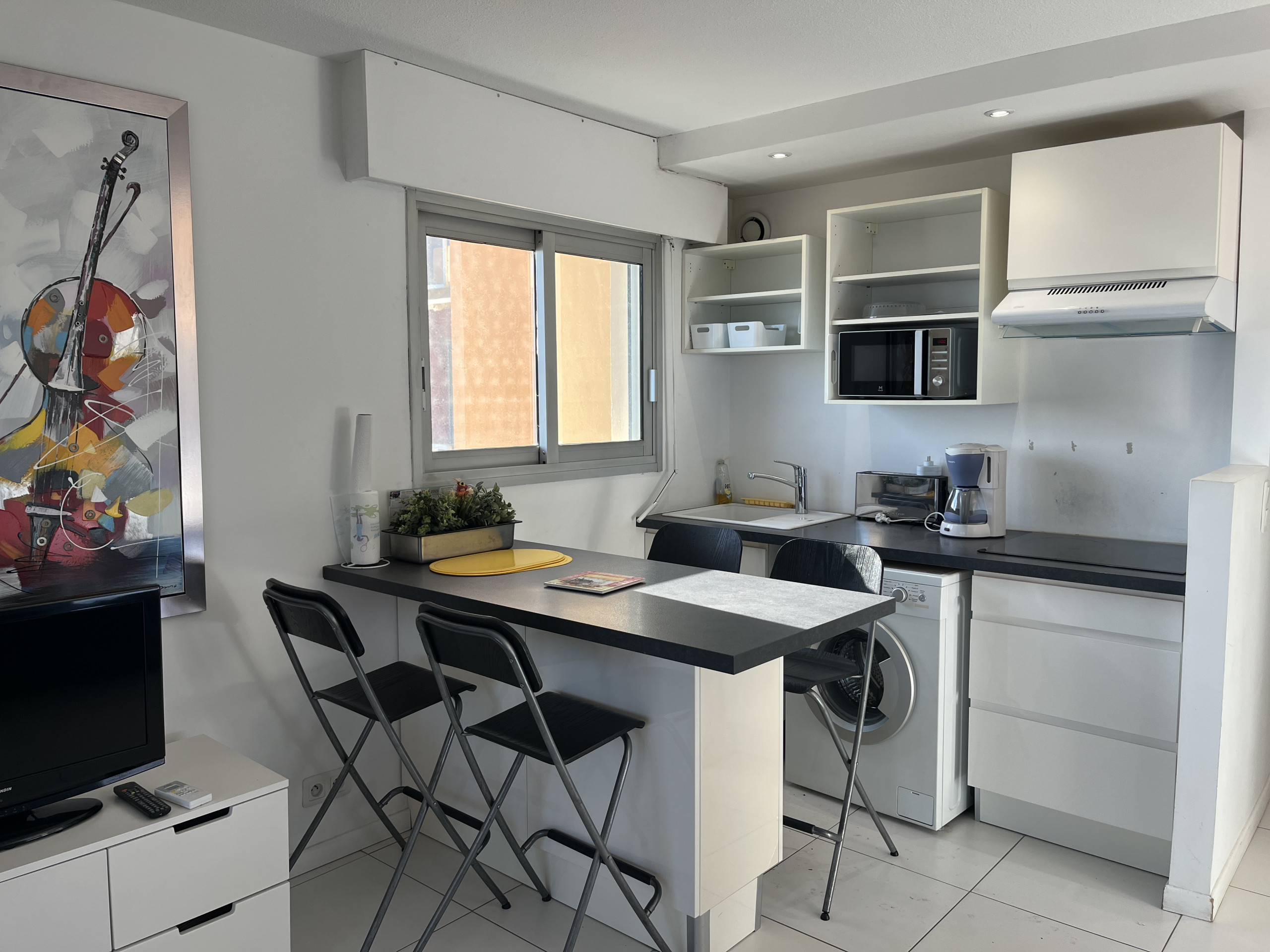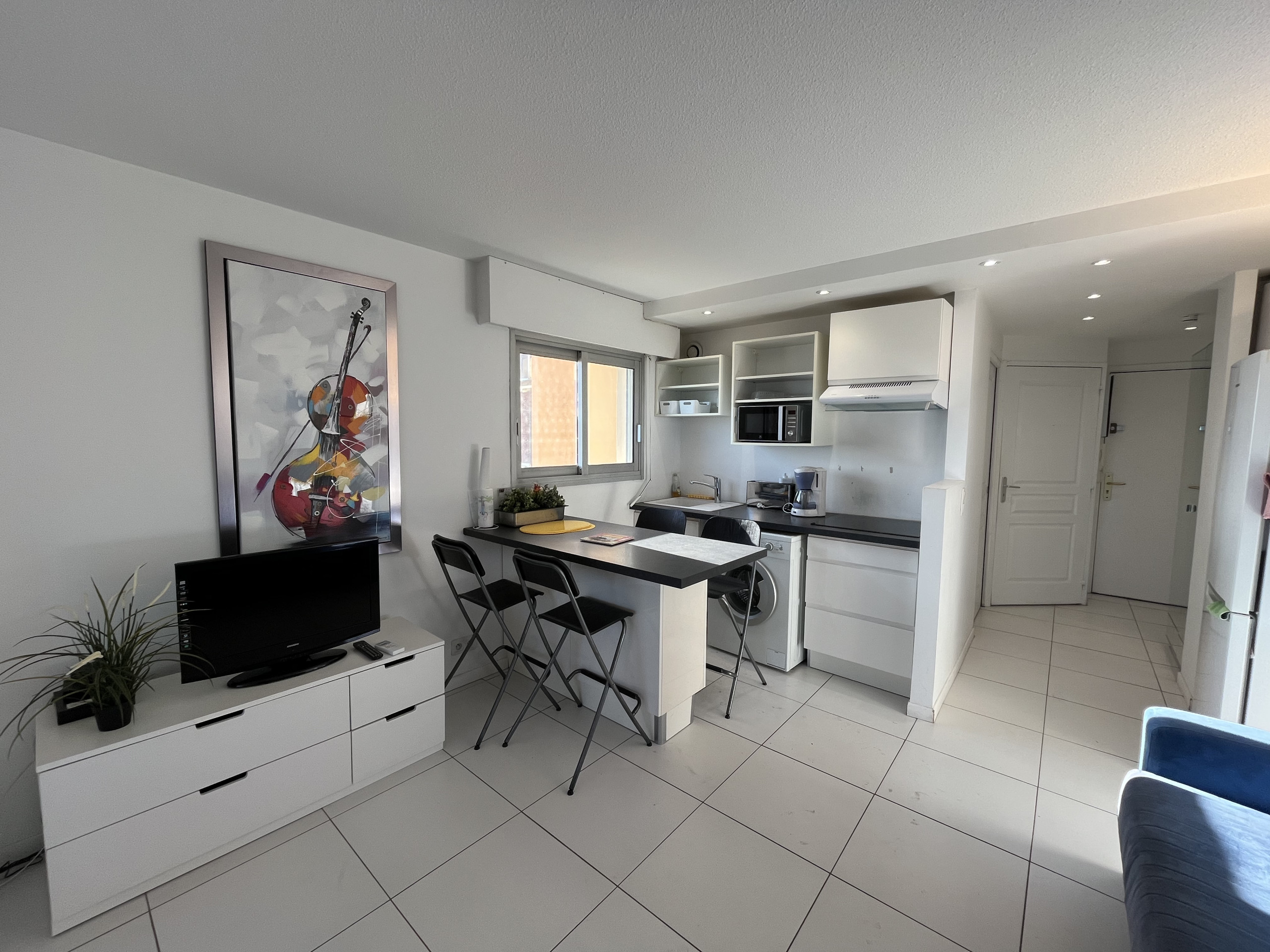 Ces 30m2 permettent le couchage de 4 personnes, idéalement pour 2 Adultes et 2 enfants. Le beau séjour est indépendant de la cuisine équipée, un canapé confortable , table et chaises permettant la prise de repas pris principalement sur le balcon lorsque la météo le permet.