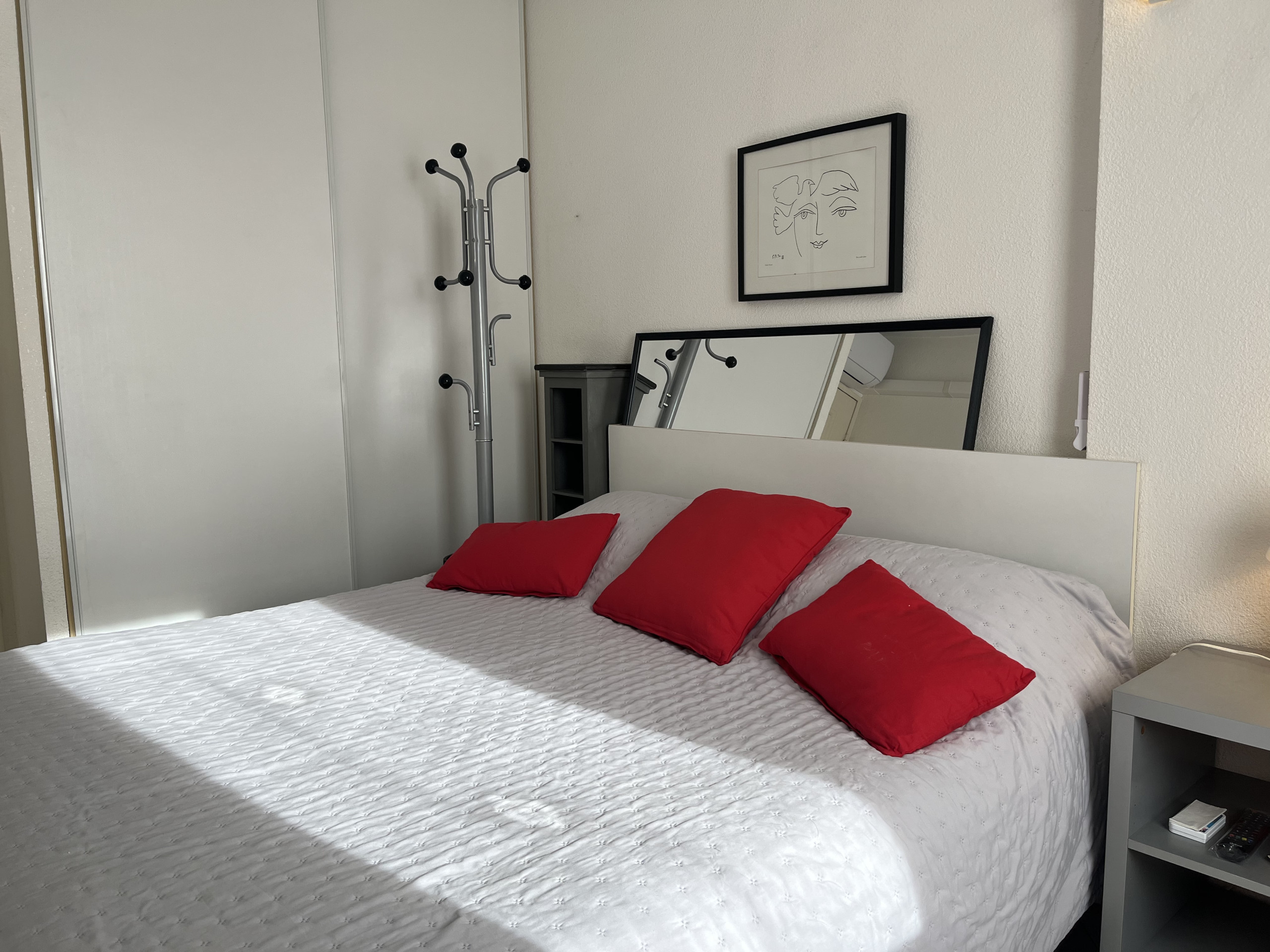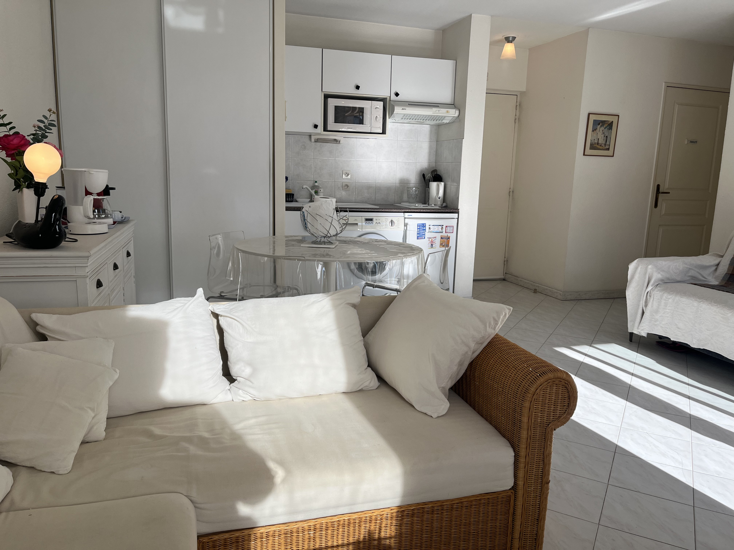Ces 30m2 permettent le couchage de 4 personnes, idéalement pour 2 Adultes et 2 enfants. Le beau séjour est indépendant de la cuisine équipée, un canapé confortable , table et chaises permettant la prise de repas pris principalement sur le balcon lorsque la météo le permet.