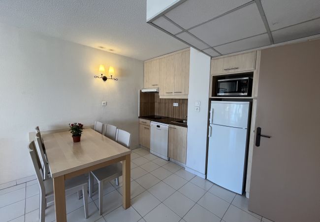 Ces 30m2 permettent le couchage de 4 personnes, idéalement pour 2 Adultes et 2 enfants. Le beau séjour est indépendant de la cuisine équipée, un canapé confortable , table et chaises permettant la prise de repas pris principalement sur le balcon lorsque la météo le permet.