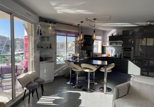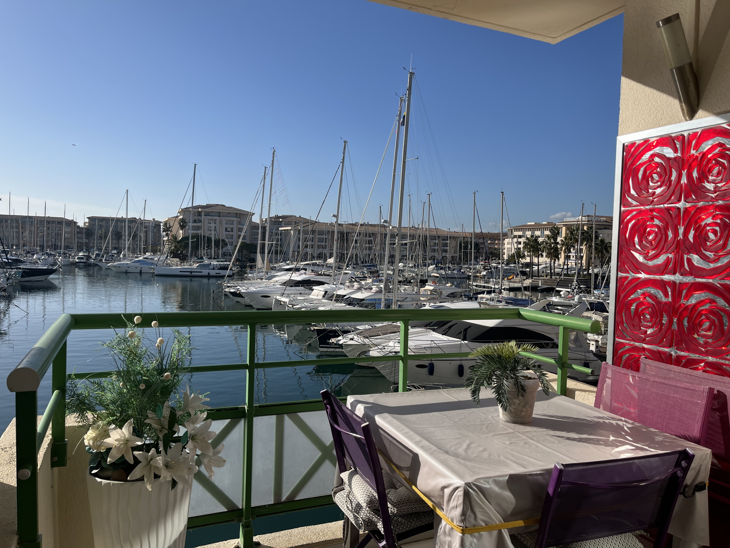Sur les quais de Port-Fréjus, magnifique T2 de 50m2, vue incroyable, climatisé, WIFI et grand garage