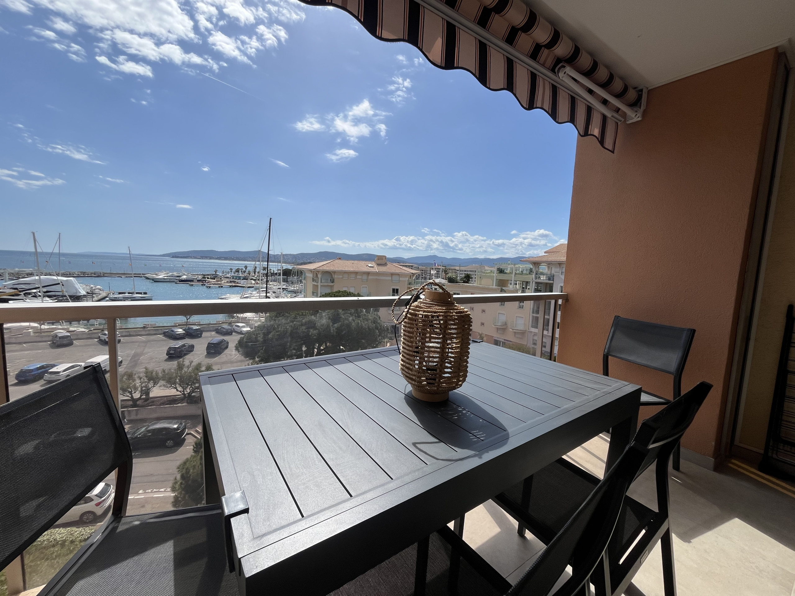 Situé au 4eme et dernier étage, accessible par l'ascenseur ce logement permet une vue dégagée sur les collines des Maures et sur le Rocher de Roquebrune.