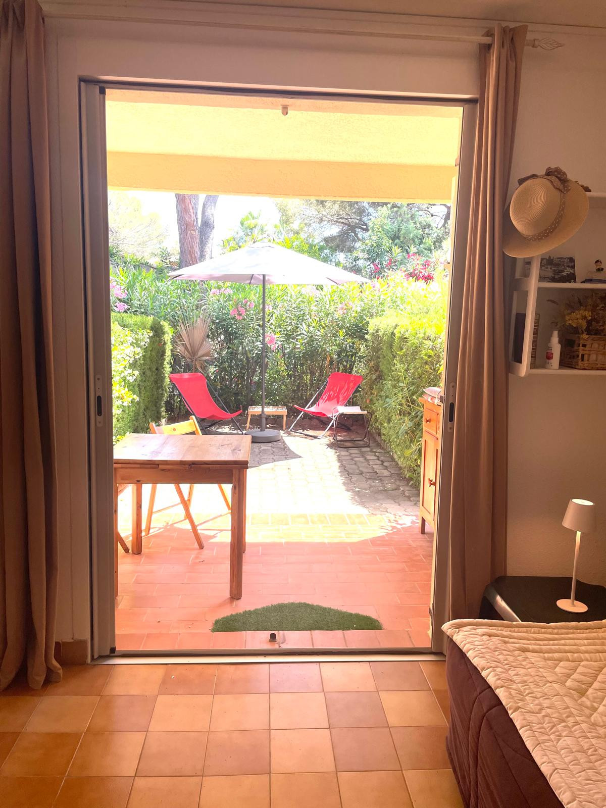 LA Péguière, T2 27m2, pour 2 Adultes et 1enfant, climatisé, jardin, parking et plage à 5mn à pied