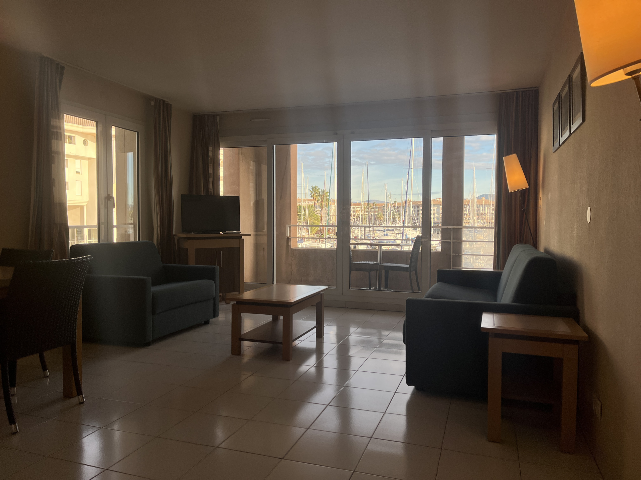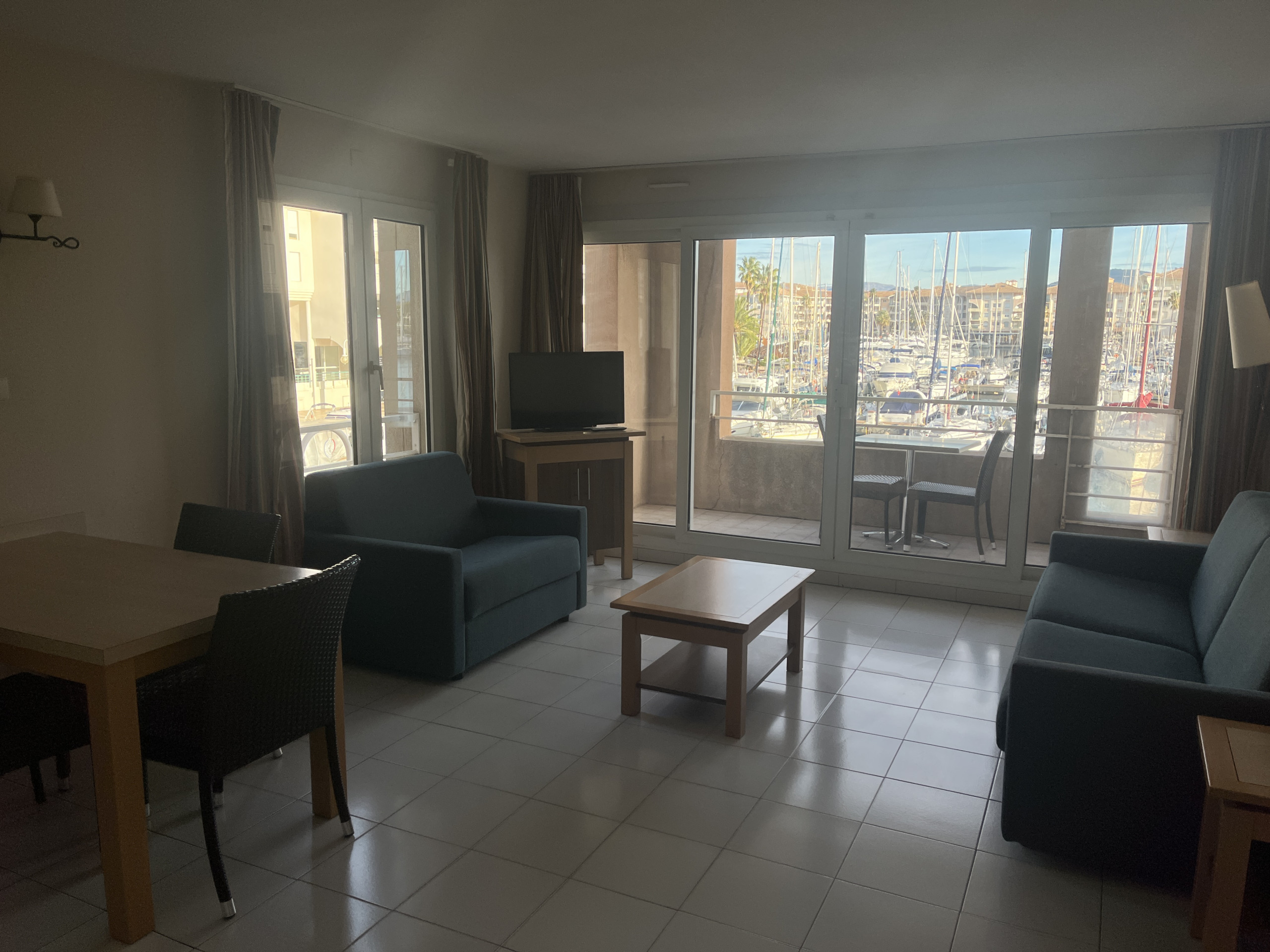 Ces 31m2 permettront très aisément le couchage de 2/3 personnes qui profiteront d’un très beau balcon avec une magnifique vue sur Port Fréjus. Le beau séjour avec cuisine ouverte et équipée, un canapé et un fauteuil convertibles en lits 2 places et 1 place, table et chaises permettant la prise de repas donnant sur la grande baie vitrée autant dire un sentiment de bel espace.